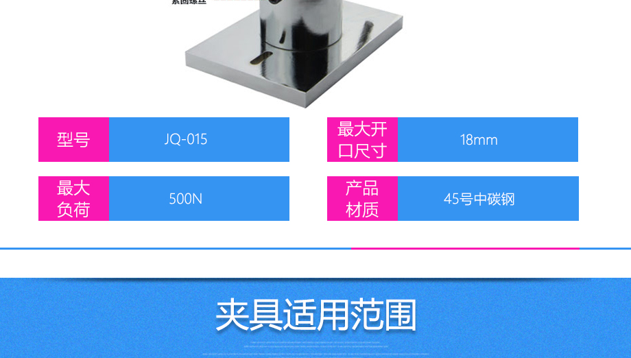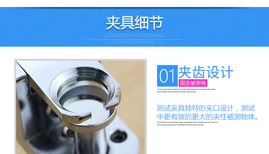 產品型號:JQ-015 品牌:劍 喬 用途:紐扣夾具適用范圍:紐扣、玩具等材料的拉力,破壞力測試。