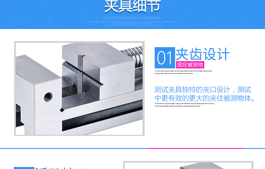 產品型號:JQ-050 品牌:劍 喬 用途:平口鉗夾具適用范圍:橡膠、各種線纜、紙、各種電器元件、塑料薄膜等材料的拉力,破壞力測試。